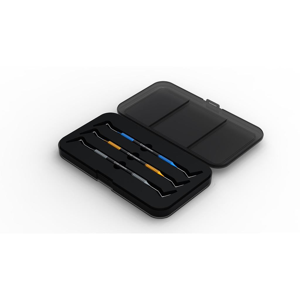 Juego de 3 atacadores de mano (hand pluggers) de Meta Biomed, con una parte de níquel titanio y otra de acero inoxidable.
