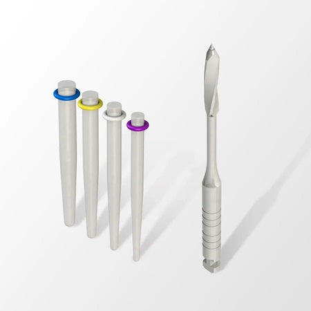 Los postes DUREVOLE de fibra de vidrio son postes intrarradiculares dobles cónicos y translúcidos. El poste tiene un módulo elástico similar al de la dentina, proporcionando una unidad mecánica más homogénea, permitiendo una distribución más uniforme de la tensión a lo largo de la raíz. Este paquete contiene una fresa para la preparación del conducto radicular.